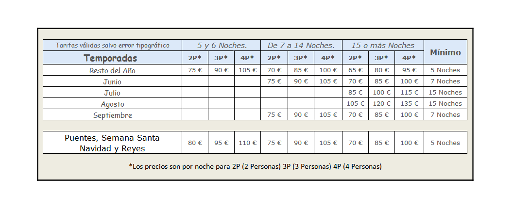 Para saber el precio de un alquiler comunicar al propietario día de entrada, día de salida y número de personas que se alojaran en la casa.